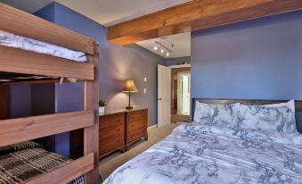 The bedroom features a plush queen bed and a full-over-full bunk, giving everyone space to spread out and relax after a day on the slopes. A sleek, updated bathroom stocked with all the essentials makes it easy to refresh for the next adventure.