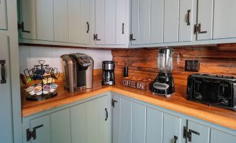 The cabin is absolutely beautiful and fully equipped with everything and anything needed. What an awesome family escape from the hustle and bustle of a fast paced life. Spend some quality time with your family telling ghost stories at the fire pit, playing board games, and taking hikes in the woods. Then cuddle up on the comfy couch, share your experiences in the cabin log and watch a movie together. I highly recommend this cabin!