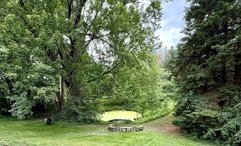 While the interior is modern, clean, and cozy, the true charm of the cottage lies in its surroundings. Spend your days outdoors—lounging by the pond, relaxing in the spa amenities, or enjoying quiet moments around the fire.