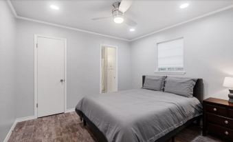 The Master Bedroom has a King Bed and en-suite bath with a Smart TV. Bunk Bedroom has 2 twin over full bunk beds and a Smart TV. Bedroom 2 has a queen bed and a connected bathroom into the attached Casita. The Casita is a full 1 bedroom suite with its own entrance or can be accessed through the main house. The Casita has 1 bedroom, shares the bathroom with Bedroom 2, living area with a daybed, Smart TV with complimentary Youtube TV,a kitchenette with a sink, microwave and mini fridge. You can lock the door connecting to bedroom 2 for a fully private experience.