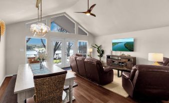 Enjoy open-concept living with oversized windows showcasing panoramic lake views. Whether you’re sipping morning coffee or playing board games at night, the home is designed to bring people together.