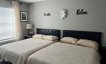 Located just 15-20 minutes from Disney. escape to our 3rd floor cozy condo located in our resort style gated community where luxury and comfort meet. This condo is the epitome of comfort featuring 3 plush 12inch memory foam beds in each bed with cushioned headboards to rest your head while watching your favorite streaming program on the 55- inch smart TV. Guests also have access to en-suite full- size shower/tub combo, shampoo, conditioner and body wash are provided.