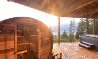 Escape to this family friendly , 3100 Sqft lodge with breathtaking views of Cle Elum lake and the mountains. Only an hour and half away from Seattle, you'll instantly feel relaxed as you drive through the mountains to get to your private and gated 3 acre home in Morgan Creek. Relax in the hot tub, take a steam in the sauna overlooking unobstructed views, and spend time outside in a custom built outdoor kitchen and patio space your whole party can enjoy. Hangout around the gas fire pit and star gaze under the lights year round. During the days, choose an outdoor activity - hiking, biking, kayaking, rafting, boating, fishing, jet skiing, ATVs, swimming, and much more. During the winter- walk right outside your home for great sledding, rent snow mobiles, go snow shoeing, skiing and hiking. Head to Suncadia Resort, only 20mins away for golfing, walking paths and trails, playgrounds, farmers markets, restaurants and wineries. Enjoy their winter activities like ice skating, skiing, tubing and winter festivals.