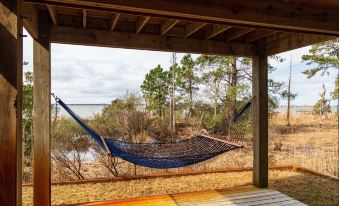 Blackbeard's Treasure might not be here, but you will make treasured memories! The WIE Village is unique in many ways...made from mostly local OBX re-purposed materials, combined with charm, accommodate 1 to 3 people. Two pods & main house borders 1600 acres of nature preserve within 2 mi of the beach. To accommodate larger parties, reserve Pod Zeus &/or Main House in addition to Pod Messi. These listings can be found under my profile!