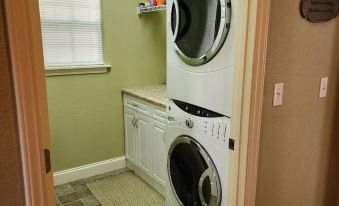 Kitchen, cozy living room, dining room with a view. Washer, dryer.