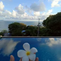 Семейный курорт. Расположение на холмах с видом на море, очень тихое и удобное. Комната очень чистая и ухоженная. Сервис отличный, владелец и персонал очень любезны. На противоположной стороне дороги есть ресторан, который также принадлежит той же семье, и там очень вкусно. Прогулка до Бамбукового пляжа занимает менее 10 минут, он очень красивый, песок мягкий и довольно тихий, мало людей с видом на закат. Я хотел бы вернуться сюда снова.