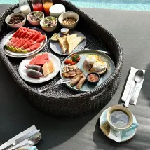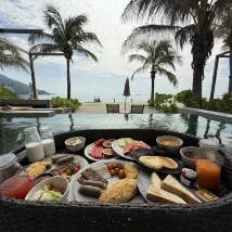 В отеле царит настоящая курортная атмосфера. Номер очень просторный, с собственным двориком и небольшим бассейном, дети были в полном восторге! Завтрак подавали прямо в номер, выбор был очень разнообразным. А наслаждаться им у бассейна под легким морским бризом было невероятно приятно.