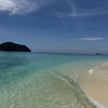 Напротив, остров Кла: в низкий сезон, если приехать до 12:00, до прилива, можно заняться снорклингом — там очень много рыбы. На острове два места для высадки: одно ближе к острову Аданг. Песок там мельче, но в сезон дождей могут быть довольно сильные волны, и не так много интересных мест или рыбы. Другое место для высадки находится с обратной стороны. При высадке нужно быть немного осторожным, так как там много обломков ракушек. Рекомендуется надевать обувь для плавания (коралловые тапочки). Там есть дерево, увешанное ракушками, под которым можно найти тень, а рыбы очень много и она разнообразная (на последнем фото как раз запечатлены рыбки, снятые во время снорклинга в этом месте).
