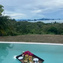 С момента нашего прибытия у нас были потрясающие впечатления на этом замечательном курорте. Мы путешествовали с еще одной парой. Курорт организовал наш трансфер из отеля, в котором мы остановились на Пхукете, и отвез нас к пристани для трансфера на длинной лодке прямо на пляж перед курортом. Домик был точно таким, как описано на их веб-странице. Вид из нашей каюты был прекрасен, мы могли видеть перед собой великолепную бухту с впечатляющими горами. Курорт был тихим и расслабляющим. И весь персонал был очень сердечным и дружелюбным. Пиано был главным и координировал все, к нашему удовлетворению. Какой замечательный менеджер, всегда очень прилежный, с улыбкой на лице! Сажа был в ресторане и баре, исполняя все наши пожелания и давая нам советы. Остальной персонал был очень приятным, уважительным и дружелюбным. Мы никогда не видели уборщиц, и на территории курорта и в нашем домике все было чисто и свежо. У нас была потрясающая душевая на открытом воздухе. Было здорово! Единственное, что нужно знать, это отсутствие ключа, когда вы выходите из комнаты. Кабина остается открытой. У них есть сейфы в каждой каюте. Но мы чувствовали, что были в гостях у друзей, в безопасности, счастливы и расслаблены. Поскольку мы были в низкий сезон, гостей было не так много. Нам повезло, потому что дождя не было, по крайней мере днем. Все дамы в спа были великолепны. Нам с друзьями каждый день делали массаж. Это было потрясающе!! Мы ели в ресторане Resort каждый день, за исключением одного вечера, когда мы пошли в местный ресторан. Еда была вкусная. Нам больше всего понравилась местная рыба и салат из папайи. Мы попробовали почти все, что есть в меню. Мы арендовали мотоцикл с коляской и покатались по острову. На этом маленьком острове все такие милые. Мы посетили рынок, чтобы купить отличные соусы и местные специи, рекомендованные шеф-поваром ресторана на курорте. Мы сделали покупки, купили сувениры, получили массу удовольствия, фотографируясь и катаясь. Пианино подарило нам удивительные впечатления от пребывания прошлой ночью в их глэмпинге в горах. Это была красивая роскошная палатка с невероятным видом на залив и частный бассейн. Нам очень понравилось! Мы хотели бы посетить его снова. Огромное спасибо за отличный сервис, который вы нам оказали, и за прекрасные воспоминания, которые мы все оставили. ขอบคุณ Лилия Салазар