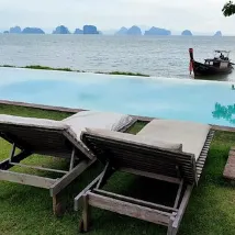 Отличный, прекрасно расположенный курорт с видом на залив Пханг Нга. Виллы огромные, внешняя ванная комната просто прекрасна. Завтрак очень вкусный и разнообразный, персонал просто приятный. Вы можете легко исследовать остров, воспользовавшись большим количеством велосипедов. Вид из бассейна просто отличный. И даже небольшое недоразумение при бронировании было решено очень любезно.