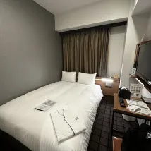 Номер был небольшой, но чистый. Регистрация проходила через автомат. При бронировании я запросил номер повыше, и мне его предоставили. Отель расположен недалеко от станции Санномия, что удобно для поездок на поезде Portline в аэропорт Кобе и обратно. Завтрак в ресторане был посредственным, с ограниченным выбором. Пробники косметики, зубную щётку, пижаму и прочее пришлось брать с собой.