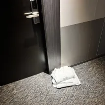 Ответ от объекта размещения: Благодарим вас за выбор отеля Sotetsu Fresa Inn Kobe Sannomiya. Мы рады, что вы остались довольны нашим местоположением и удобствами. Однако, похоже, возникло недопонимание относительно способа предоставления полотенец, поэтому мы хотели бы прояснить этот вопрос. Эти полотенца не новые. Некоторые гости отказываются от уборки номера и оставляют использованные полотенца в коридоре. Новые полотенца кладут в специальный пакет и вешают на дверную ручку. Мы никогда не оставляем полотенца прямо на полу. На фотографии изображена пижама, которая не предоставляется в номере. Гостей просят использовать вешалку в лифтовом холле на первом этаже. Мы также никогда не оставляем пижамы на полу. Вас может удивить наличие возвратных полотенец в других номерах, но, пожалуйста, будьте уверены, что мы предоставляем их по-другому.