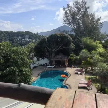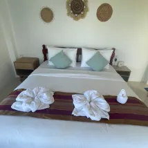 Давно хотели попасть в этот отель. Аккуратненько все по тайским меркам. Номер был превосходный, но не хватало вешалок или хотя бы крючков для одежды и не хватало сушилок для одежды. Учтите, отель на горе, там нет пляжа, ехать надо самим до пляжа. Вообще туда лучше на своем транспорте ехать. Вид с домиков с джакузи на море просто бесподобный!! Завтраки средненько, но цены в ресторане более менее приемлимые. Даже есть жаренное мороженное на десерт! Но мы сюда вернемся!