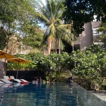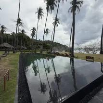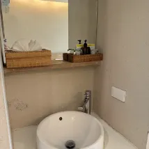 В целом отель хороший, завтраки отличные, в номерах все что нужно. Раковина не в ванной комнате, а в прихожей, по крайней мере в нашем номере было так. Из минусов, душевая лейка не держалась в креплении и плохо распыляла воду. В верхние корпуса нужно подниматься с пляжа по лесницам, потом еще до 3-го этажа по лестнице. Лифтов нет. На территории 3 бассейна, дайвклуб, спа. Есть бесплатный шатл басс до пирса 3 раза в день.