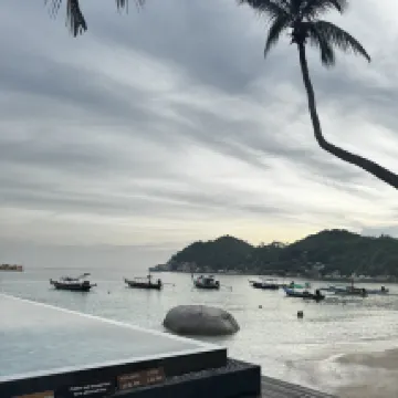 Мы заплатили за повышение категории номера с балкона на море до балкона на океан, но вид на пляж был очень плохим. Честно говоря, я бы не рекомендовал платить за повышение категории номера. Отель предлагает несколько видов деятельности, например, каякинг. Они помогут вам арендовать скутер, так как отель находится далеко от города. Есть трансфер до центра города три раза в день. Пляж — один из лучших на Ко Тао.
