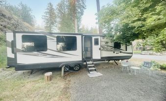 This luxury RV is tucked quietly along the Spokane River on a secondary lot with two private resident beaches for lake and river access. This unique property has everything you need for a relaxing couple's getaway, solo-travelling adventure, or small family stay! We are 10 minutes from downtown Coeur d'Alene, and a short drive to most activities this spectacular area has to offer. About pets:Pets allowed: dogs less than 20 lbs per pet (limit one pet total).About checkOut:Check out before 11:00 AM.About children:Children allowed: ages 0-17.The sofa bed is a double..About checkIn:Check in after 2:00 PM.About smoking:Smoking is not permitted.About minBookingAge:Minimum age to rent: 21.About events:No events allowed.