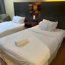 Мы провели в отеле три ночи, и я бы оценил его на очень хороший. Расположение недалеко от центра города и пляжа. Мы не ели в отеле из-за более высокой цены, но вместо этого вы можете использовать приложение GRAP для доставки еды или торговый центр через дорогу, где вы можете найти множество ресторанов и супермаркетов. Есть также детские игровые площадки, которые обязательно стоит посетить семьям с маленькими детьми. В отеле есть большой бассейн для взрослых, а также детский бассейн. Нам нравится бесплатный трансфер до торгового центра через дорогу и до города три раза в день. Персонал был очень дружелюбным и услужливым. Единственное, что можно было бы улучшить, это отсутствие чистоты вокруг бассейна и цена на завтрак.