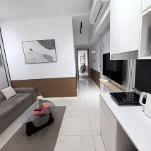 The unit is very new, but the cleanliness REALLY REALLY need to IMPROVE, as the floor is very very very dusty, bathroom with hairs, toilet sink with stain from previous guest.