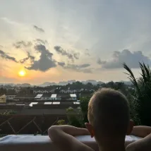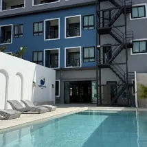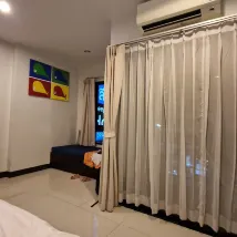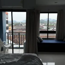 Отличный отель за такую стоимость да еще и с бассейном. Жили 2 дня перед перелетом. 7/11 рядом. Бассейн чистый, в зоне холла есть туалет, что удобно. Есть кафешка при отеле. Недалеко большой продуктовый и очень классный массаж через дорогу на соседней улице. Номер чистый, балкон большой - брали вид на горы (на закат). Шума от улицы было минимум. Нам очень понравилось. Блок кондиционера стоит прямо на балконе, поэтому чтобы там сидеть, нужно выключить Кондей в номере, но с другой стороны - он дует теплым ветром, мы на стуле возле сушили вещи, что удобно.