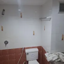 Все старое, неудобные скомканные жёсткие подушки и жесткий матрас. Душ лейка торчит из стены и работает плохо. До 3 часов ночи долбит музыка из соседних заведений, спать невозможно. Старый кондиционер, но охлаждал нормально и запахов в номере не было. В целом за свои деньги нормально на 1-2 ночи.