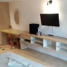 Как я уже наверно писала раньше номер просторный достаточно, расположиться есть где. Есть стул крутящийся😅шкаф, несколько вешалок 👍👍👍 фен по запросу на ресепшене. Если ты просишь убрать комнату - убирают 👍если не просишь,они просто ставят воду и туалет бумагу. полотенца тоже хоть каждый день могут менять (единственное мне не понравилось запах затхлости, не успевают просыхать?)