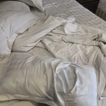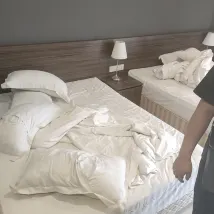 Гигиена: Очень грязно, наволочки и наволочки черные (не знаю, стирали ли их), полотенца и другие вещи тоже очень черные, и я не смею ими пользоваться, тапочек нет.