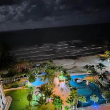 The balcony facing the ocean. Nice view at night. The room was clean and neat.