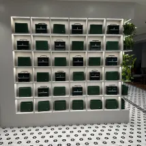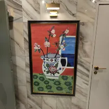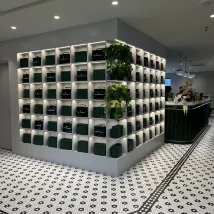 Pleasant atmosphere with plants and vintage luggage lift at the entrance.