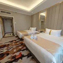 Внешний вид/атмосфера кажутся роскошными, но только после того, как я выспался и принял душ. Душевая была слишком маленькой, всего 2 фута шириной, и мой локоть всегда ударялся о поручень для инвалидов. Душевая зона раньше была ванной и не была спроектирована должным образом для душевой. оно было слишком маленьким. водонагреватель также не обеспечивал нужного тепла для принятия душа. наша кровать была слишком мягкой и сырой. проснувшись на следующий день, мы почувствовали боль в спине. это не была хорошая поддержка для моей поясницы. возможно, матрас уже давно использовался. Управление кондиционером также довольно сложное в использовании. был период времени, когда мы чувствовали, что комната напоминала сауну. Функциональная кнопка включения/выключения и настройки режимов работает некорректно. Наша предположительно чистая простыня была испачкана желтоватым цветом, и мы попросили персонал переодеться. к счастью, они изменили это. в одном углу мы нашли несколько женских волос, которые не были должным образом вымыты. Персонал на стойке регистрации не очень дружелюбный, но остальные сотрудники были очень благосклонны и с радостью протянули руку помощи. предоставленные телевизор и фильм - это для меня большой плюс, чтобы убить свое свободное время. в конце концов, Кучинг — довольно скучная столица.
