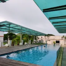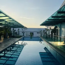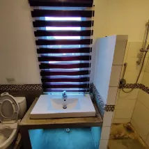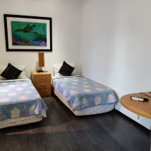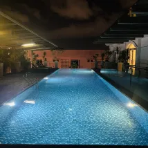 Нет ресепшена после рабочего дня с 8 до 5. Но можно ли связаться по Whatsapp по указанному в номере номеру для получения помощи. Ворота будут закрыты вечером, но есть пульт дистанционного управления воротами с ключами от номера и картой доступа к главной двери лестницы. Удобства вполне полные, включая стиральную машину, сушилку, мини-кухню (все общие). На верхнем этаже есть бассейн и мини-тренажерный зал. Прогуляйтесь к передней части, там есть несколько закусочных, но ночью там тесно.