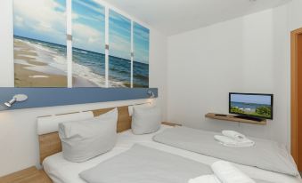 This holiday apartment is located just a few meters from the beautiful Baltic Sea beach of Kühlungsborn. The beach and the harbor promenade with the promenade offer a perfect relaxation offer. The wellness and leisure oasis Kübomare with sauna and swimming pool is in the immediate vicinity.