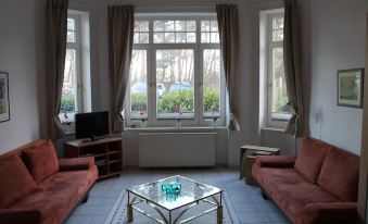 This charming holiday apartment in Villa Sonnenresidenz is located just a few steps from the wonderful sandy beach in the western part of Kühlungsborn. It is equipped with a kitchenette, bathroom, bedroom and combined living and dining area.