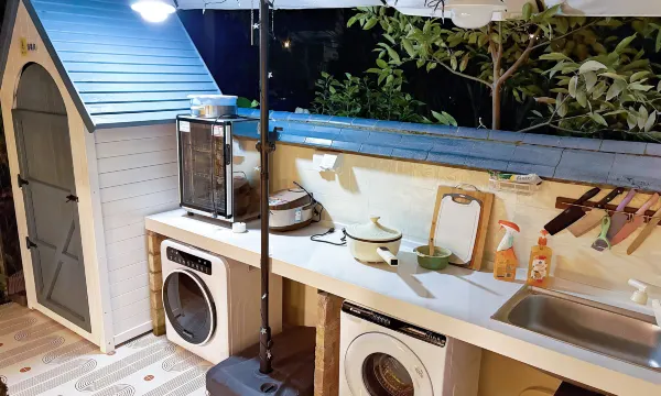 是新開的小店,就怕空氣不好,這家店做了空氣質檢,所以還是很放心的,房間設計感很好,棕色的色調,就是美拉德色系,很有秋天的氛圍,小院子坐着很舒服,還有小廚房,下次再來就多約幾個朋友,可以一起煮小火鍋吃,非常推薦!