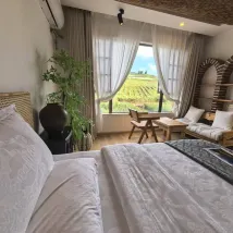 Хозяин был невероятно гостеприимен, вышел поприветствовать нас и помог с багажом. Как только я открыл дверь, меня очаровал залитый солнцем домик. Легкий ветерок с плато развевал белые занавески, создавая завораживающую картину. Вид из окна был захватывающим.