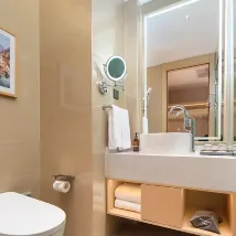 Отель может похвастаться элегантной атмосферой, просторными и чистыми номерами, а также полным спектром современных удобств. Дружелюбный, внимательный и предупредительный персонал создал поистине гостеприимную атмосферу. Расположение отеля удобное, рядом есть остановки общественного транспорта, множество ресторанов и магазинов. Завтрак был разнообразным и вкусным. Пребывание было исключительно комфортным, что делает его идеальным выбором как для деловых поездок, так и для отдыха. В целом, соотношение цены и качества превосходное, и я бы обязательно выбрал этот отель снова. Я также порекомендовал бы его друзьям и семье. Пребывание было очень приятным.