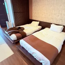 The location is good and there is a private onsen in a room. The public onsen is also good.