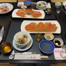 在日本已經有入住很多溫泉旅館的經驗,這次是我其中一次最最最滿意的體驗!酒店很大很乾淨,無論是停車場、庭園、大堂、公共區域、房間,都非常寬敞,給我們一種非常舒適令人放鬆的感覺。我們訂的是一泊二食的和式房間,房內備有衛生間、沐浴室和獨立溫泉,基本上足不出房即可以享受美食和隨時隨地都能泡溫泉。由於我們入住的時候是十二月份,恰巧時令食材就是松葉蟹,整個蟹宴晚餐和早餐都非常豐富美味,兩餐都是吃到很飽很滿足。旅館職員的細心服務和耐心講解也必須表揚一番。總而言之,這個旅館值得我們強烈推薦,如果我們再來這個地方的話,也肯定會再選擇這個旅館的。