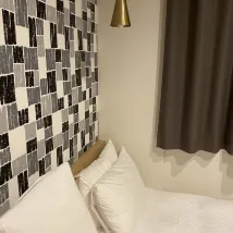 Отель находится в тихом районе , свернув с шумной улицы. Есть все самое необходимое. Микроволновая печь, стиральная машинка в общем доступе. Очень удобно. Номер чистый, тихий. Рядом с зеленой веткой метро