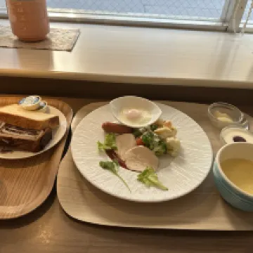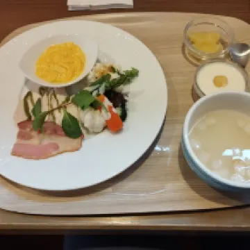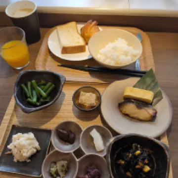 Завтрак можно выбрать либо в японском, либо в европейском стиле. Тогда вам принесут сервированный поднос с едой. Кажется, что всего понемногу, но в итоге получается довольно сытно. Чай, зерновой кофе из кофемашины, холодные напитки, несколько видов хлеба, в том числе сладкого, тоже есть.