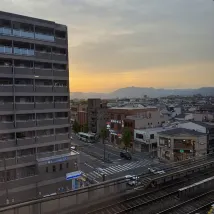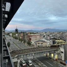 Расположен в тихом районе, прямо возле станции Тодзи. До храма Тодзи 5 минут пешком. До основных достопримечательностей Киото на автобусе, остановка прямо возле гостиницы. Рядом большой ТЦ Aeon, куча комбини, разных едален. Номера большие, чистые. Некоторые номера выходят на ж/д, слышно проходящие поезда, но не критично. Затраки на 4. В общем достойный отель.