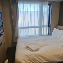 Номер довольно просторный (для двоих), чистый, аккуратный, каждый день меняли полотенца. В отеле есть всё необходимое - от фена для волос, до ватных дисков, палочек и даже выпрямителя для волос, который можно взять на ресепшен! Очень приветливый персонал, радушно встретили и отвечали на все вопросы. В отеле также есть комната для курения, общая зона для питания, зонтики. Вид из окна великолепный) Обязательно будем рекомендовать и вернемся снова!