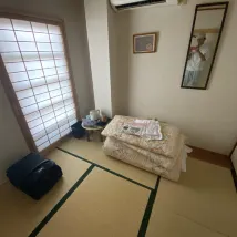 Номер очень чистый, одеяло очень теплое, кондиционер имеет функции охлаждения и обогрева, звукоизоляция не очень хорошая, процедура регистрации находится в 5 минутах ходьбы, просто сделайте фото и отправьте его. когда вы выезжаете, татами пахнет довольно сильно
