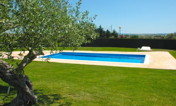 L'Ampolla 2 km from Playa Arenal: Beautiful, comfortable apartment block "Inés". In a quiet, sunny position. For shared use: property, natural garden, swimming pool angular (6 x 15 m, depth 1 - depth 90 cm, seasonal availability: 01.Jun. - 30.Sep.). Outdoor shower. Private: property 50 m2 (fenced), natural garden. Patio (50 m2), pergola (15 m2), barbecue. In the house: WiFi, air conditioning, washing machine. Parking. Supermarket 3 km, restaurant 5 km, bakery 3 km, bus stop 11 km, railway station 4 km, sandy beach "Playa Arenal" 3 km. Sports harbour 5 km, golf course (15 hole) 45 km. Nearby attractions: Port Aventura 65 km, Parque natural Ports Tortosa Beseit 52 km, GR 92 15 km, Barcelona 170 km, Parque aquatico 65 km. Please note: car recommended. "Inés", 3-room apartment 80 m2, on the ground floor. Comfortable and cosy furnishings: living/dining room with digital TV. Exit to the garden, to the terrace. 1 double bedroom with 1 french bed (135 cm, length 190 cm). 1 double bedroom with 1 bed (90 cm, length 190 cm), 1 x 2 bunk beds (90 cm, length 190 cm), hip bath/bidet/WC. Kitchen (dishwasher, 4 ceramic glass hob hotplates, toaster, kettle, microwave, electric coffee machine). Exit to the garden, to the terrace. Shower/WC. Air-conditioning, forced-air heating. Terrace furniture, barbecue. Panoramic view of the sea and the mountains. Facilities: washing machine, iron, hair dryer. Internet (WiFi, free). Parking (fenced). Suitable for families. HUTTE-001649