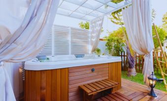 For your moments of relaxation, you will have a large outdoor swimming pool, as well as a 4-seater Shiatsu massage jacuzzi, placed under a canopy under the stars under the coconut trees.
