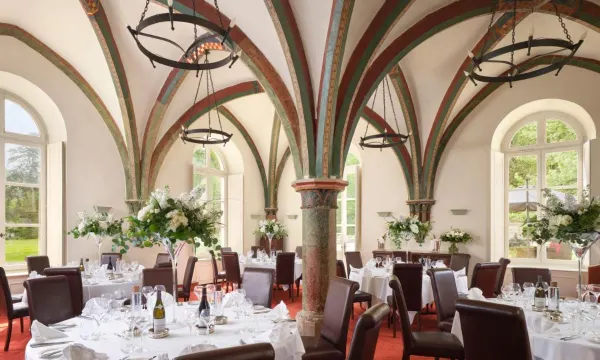 Let us be clear: the setting and surroundings are truly exceptional, this is after all a refurbished medieval monastery. The hotel has been redecorated in a neo-gothic style, sometimes a bit over-the-top Hollywood style but it remains impressive. It is part of the 'Relais & Chateaux' offerings. You can dine in the gastronomic restaurant but better reserve in advance, it looks like groups of tourists are welcomed too. The domain is very nice with a little lake, poneys walk freely round the premises. The staff is overall friendly but when we arrived it was raining cats and dogs and no one came out to help us get our suitcases out of the car. We got totally soaked. At least umbrellas would have been welcome. Although we had booked a 'superior' room, the room itself was a big disappointment: the room did not correspond at all at the pictures shown on their site, we were located under the tiles in a small room and often hit our heads to wooden bearings of the ceiling. The carpet was simply filthy and one of the roofwindows had clearly not been cleaned for months: mold and fungus were building up on the outer side of the window. Half of the spots in the ceiling did not work so it was pretty dark to find our way around. If we wanted to take a shower then we had to crawl in the jacuzzi (a nest of bacteria) and we could hardy stand up with the faucet being on the other side out of reach. There was also a slight but very present distinctive scent of the sewers in the bathroom. No individual flasks with shampoo or shower gel, only these kind of cheap push-button containers that you find in budget hotels. The safe was located down at the bottom of the wardrobe so you had to lay on your belly to get your valuables stored. We are very disappointed: in the 80's and 90's Relais and Chateaux was a guarantee for fine hotel staying: this seems to be no longer the case. Been there, never again. Take a look at our pictures.