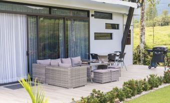 Wake up to the awe-inspiring sight of the Arenal Volcano from your deck. The fully equipped kitchen invites culinary adventures, and the living areas are designed for relaxation. Take a dip in your private pool, with charming views of the finca next door, or sizzle up a barbecue feast in the designated BBQ area.