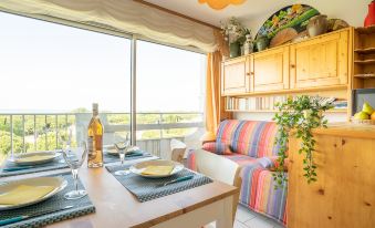 Residence "du Parc II", 8 storeys. In the district of La Motte du Couchant, 1.5 km from the centre, 250 m from the sea, 220 m from the beach. For shared use: swimming pool fenced (12 x 23 m, depth 110 - 225 cm, seasonal availability: 27.May. - 15.Sep.) with internal staircase. Unconventional pool shape. In the complex: lift. Public parking on the road extra. Shop, bakery 150 m, 25 minute walk to the centre, bus stop "De lattre de Tassigny" 200 m, railway station "Montpellier" 25 km, sandy beach 200 m, indoor swimming pool 3 km, thermal baths "Thalasso Spa" 3 km. Sports harbour 1.2 km, golf course (18 hole) 3.5 km, sailing school 900 m, tennis 3 km, minigolf 20 m, riding stable 1.3 km. Nearby attractions: Le Seaquarium du Grau Du Roi 10 km, Les Remparts d'Aigues Mortes 12 km, Les Saintes Maries 40 km. Please note: airfield close by 20 km from the property. Additional accommodations can be booked. 1-room studio 30 m2 on 7th floor. Object suitable for 2 adults + 2 children. Living/dining room with 1 double sofabed (140 cm, length 190 cm), TV. Sleeping alcove, without window with 1 x 2 bunk beds (80 cm, length 190 cm). Entrance hall with 1 x 2 bunk beds (80 cm, length 190 cm). Kitchenette (2 ceramic glass hob hotplates, combination microwave). Shower/WC. Beautiful panoramic view of the countryside. Facilities: Internet (WiFi, extra). Parking space n 137. Please note: maximum 1 pet/ dog allowed. Smoke alarm. Instead of an enclosed bedroom, some sleeping areas are located in an open-plan area (gallery, alcove, etc.).