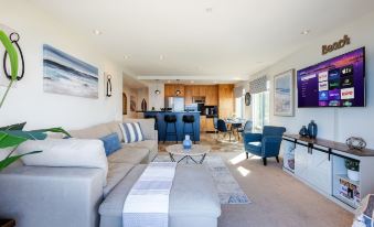 This chic 4th-floor condo has a unique combination of unobstructed views, beach access, and village walkability. Park your car in the reserved underground parking spot and walk everywhere throughout your stay—tide pools, the wedding bowl, restaurants, and museums are all at your fingertips. Be sure to explore Seal Rock, the ultimate spot to watch local seals and sea lions gather!