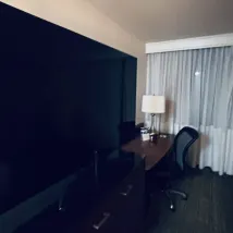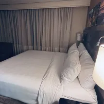 預訂的是雙床房,不知道是不是因為到的比較晚,給的是大床房。整體感覺就是中規中矩萬豪,有點老舊了,倒還乾淨的。房間不是很大,床挺大,洗手間比較一般。