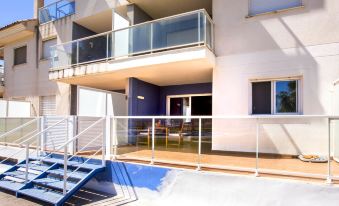 Cosy, comfortable apartment block "Agua Blanca". In the district of El Vergel, in a quiet, sunny position, 800 m from the sea, from the beach. For shared use: large garden with lawn, swimming pool (37 x 15 m, depth 40 - 210 cm, seasonal availability: 01.Jan. - 31.Dec.) with internal staircase. Unconventional pool shape. Children's pool, outdoor shower. In the house: lift. Communal covered parking. Supermarket 650 m, restaurant 400 m, bar 450 m, tram 1.7 km, bus stop 1.2 km, ferry 1.3 km, sandy beach "Les Deveses" 800 m. Tennis 800 m. The owner does not accept any youth groups. "Agua Blanca", 3-room apartment 70 m2. Spacious and bright, beautiful and cosy furnishings: living/dining room with digital TV, air conditioning and forced-air heating. Exit to the terrace, to the swimming pool. 1 room with 1 french bed (150 cm, length 200 cm), bath/WC, air conditioning and forced-air heating. 1 room with 2 beds (90 cm, length 200 cm), air conditioning and forced-air heating. Kitchen (oven, dishwasher, 4 ceramic glass hob hotplates, toaster, kettle, microwave, freezer, electric coffee machine, Capsules for coffee machine (Nespresso) extra). Shower/WC. Terrace. Terrace furniture, covered balcony. Facilities: washing machine, iron, children's high chair, baby cot, hair dryer. Internet (WiFi, free). Garage space n 32. Please note: TV only ES. VT-509791A